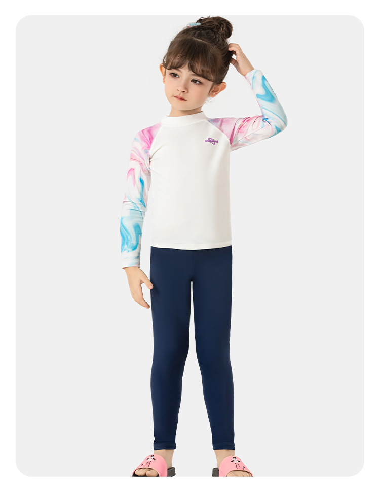 Momasong 아동 수영복 스플릿 여아 중소형 아동용 긴팔 바지 해변 자외선 차단제 수영복 여아 수영복