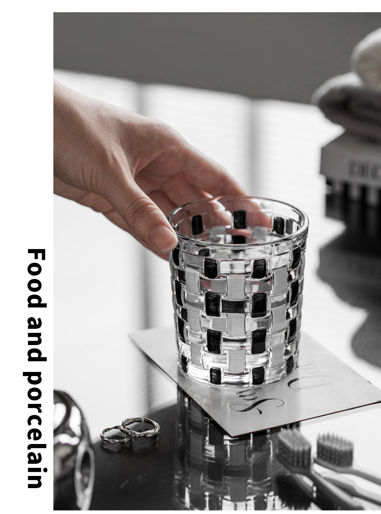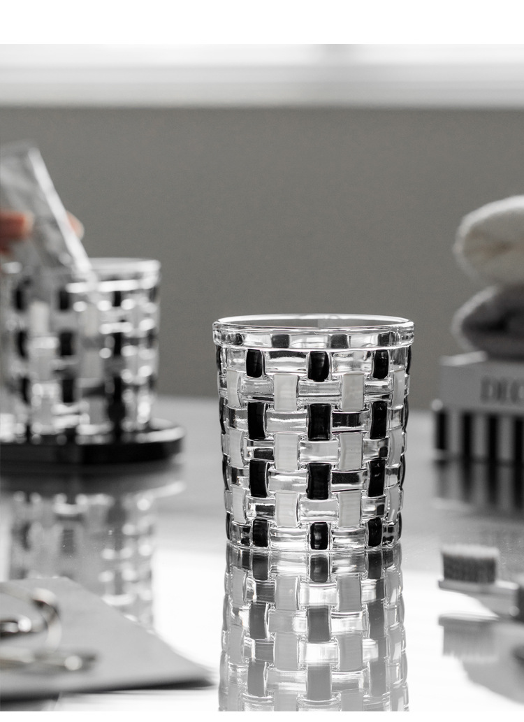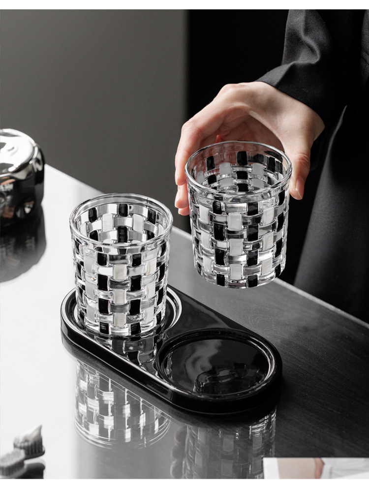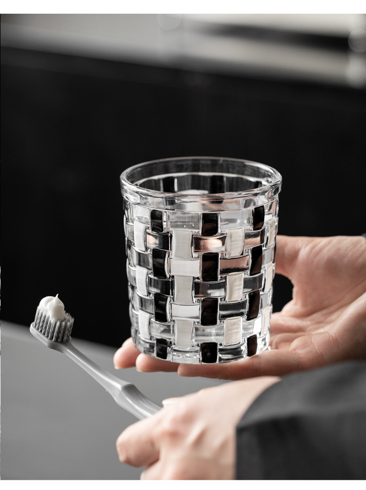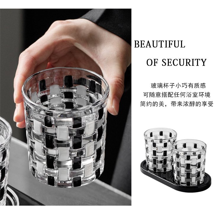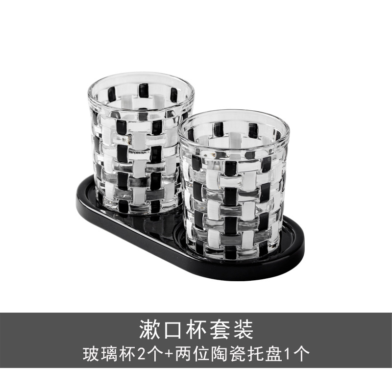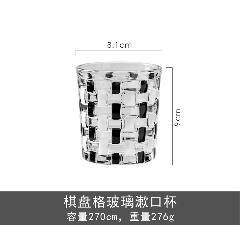 중세 스타일 클래식 흑백 바둑판 유리 구강 세척제 컵 짠 가정용 구강 세척제 컵 브러쉬 컵 치과 실린더스토어 가기
