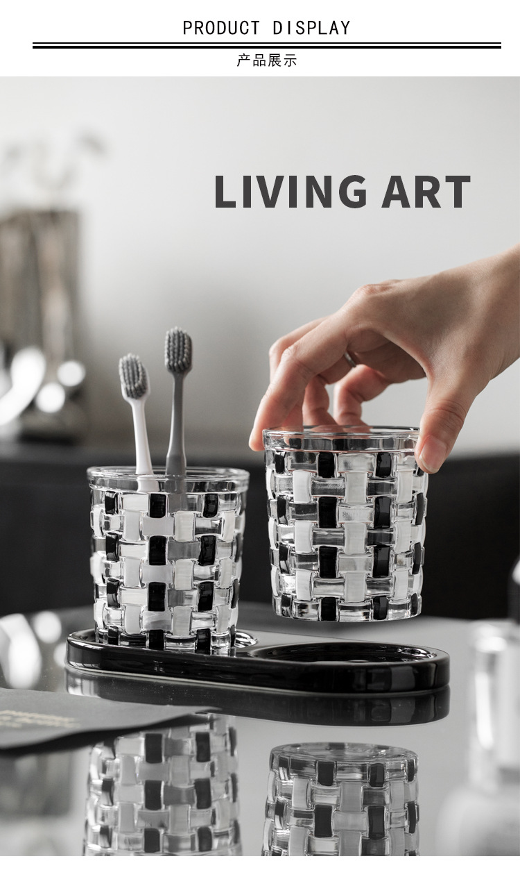 중세 스타일 클래식 흑백 바둑판 유리 구강 세척제 컵 짠 가정용 구강 세척제 컵 브러쉬 컵 치과 실린더