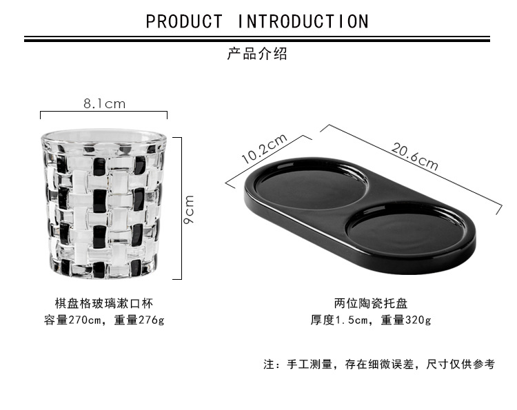 • 체스 판 양치질 컵 1 쌍 + 블랙 세라믹 카드 홀더 트레이
