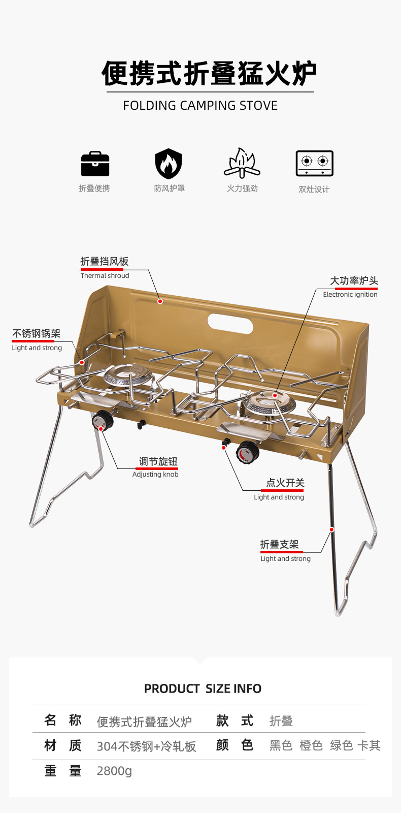 产品名称:双灶折叠猛火炉