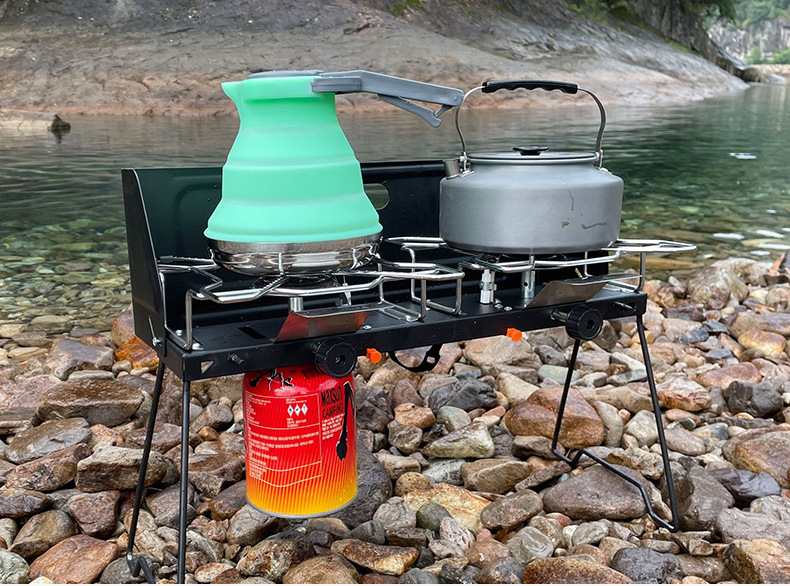 야외 피크닉 더블 버너 휴대용 가스 스토브 자율 주행 자동차 더블 헤드 카세트 스토브 접이식 캠핑 스토브 더블 스토브스토어 가기