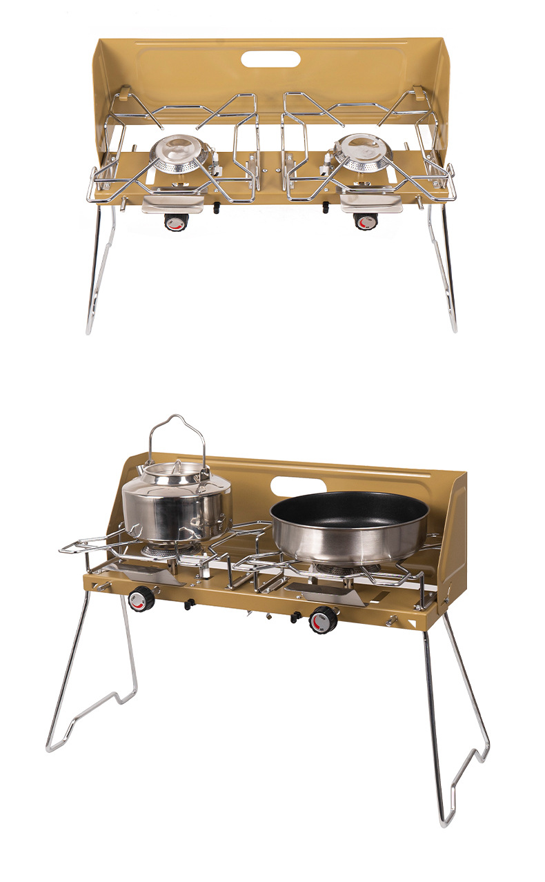 야외 피크닉 더블 버너 휴대용 가스 스토브 자율 주행 자동차 더블 헤드 카세트 스토브 접이식 캠핑 스토브 더블 스토브