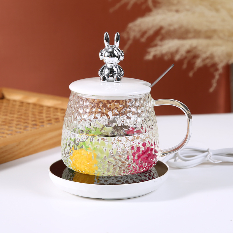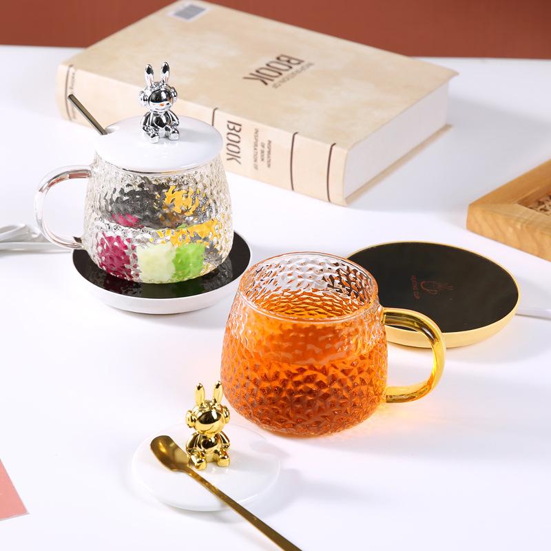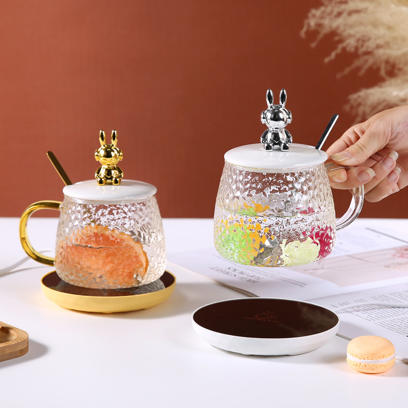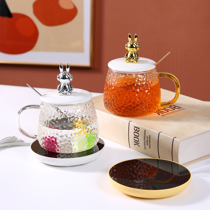 • 유리 싱글 컵 일반 + 실버 토끼 뚜껑