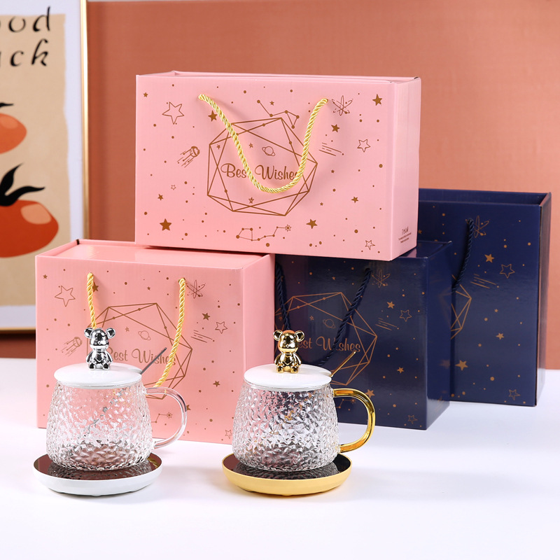 • 유리 한 컵 선물 상자 + 황금 폭력 곰 뚜껑