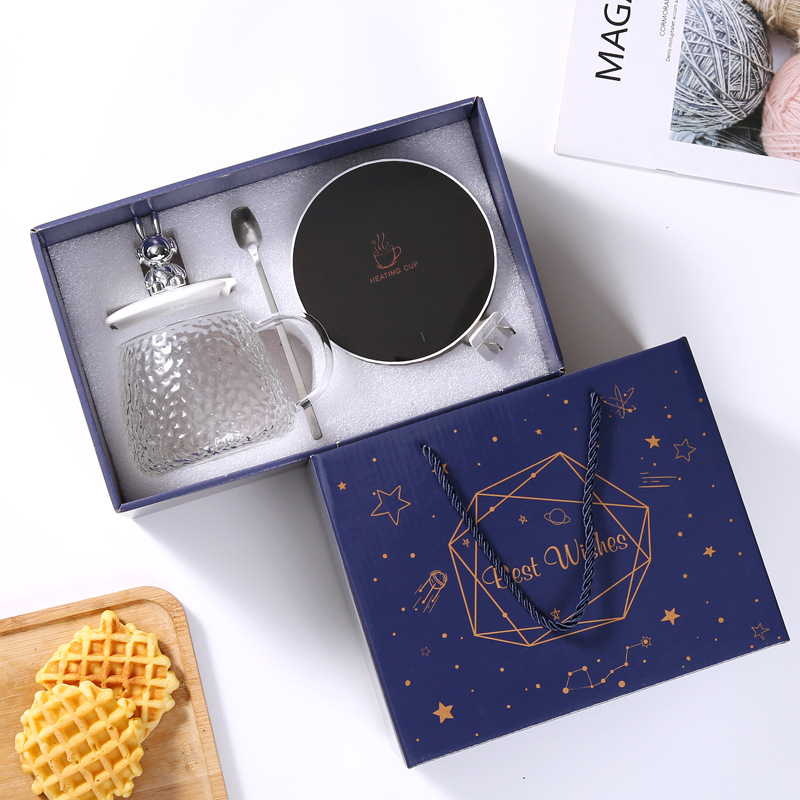 55 일정한 온도 유리 선물 간단한 세트 컵 뚜껑과 숟가락 물 컵 높은 색상 가치 회사 열기 동반 선물 컵스토어 가기