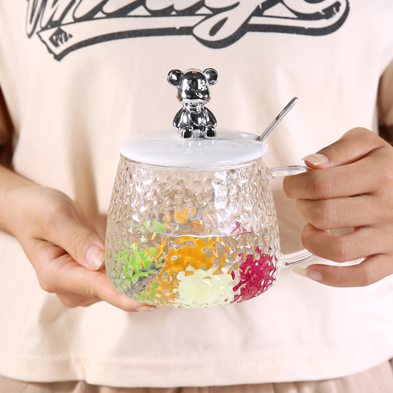 • 유리 단일 컵 일반 + 실버 폭력 곰 뚜껑