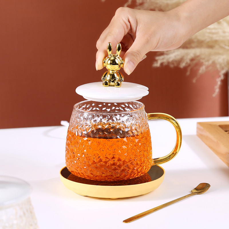 • 유리 싱글 컵 일반 + 황금 토끼 뚜껑