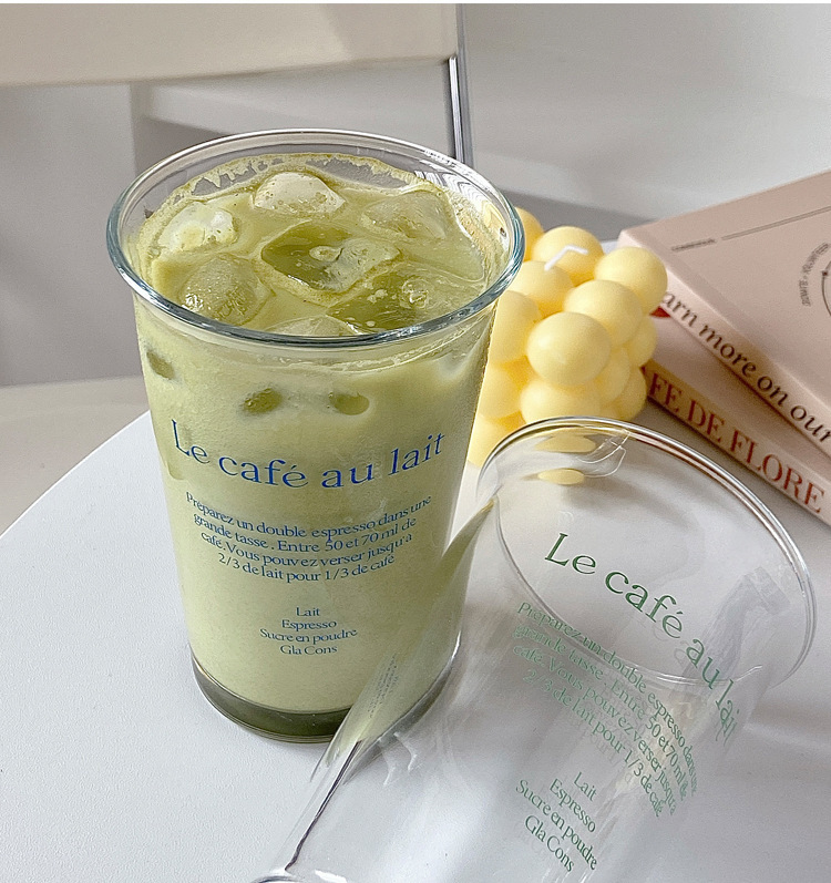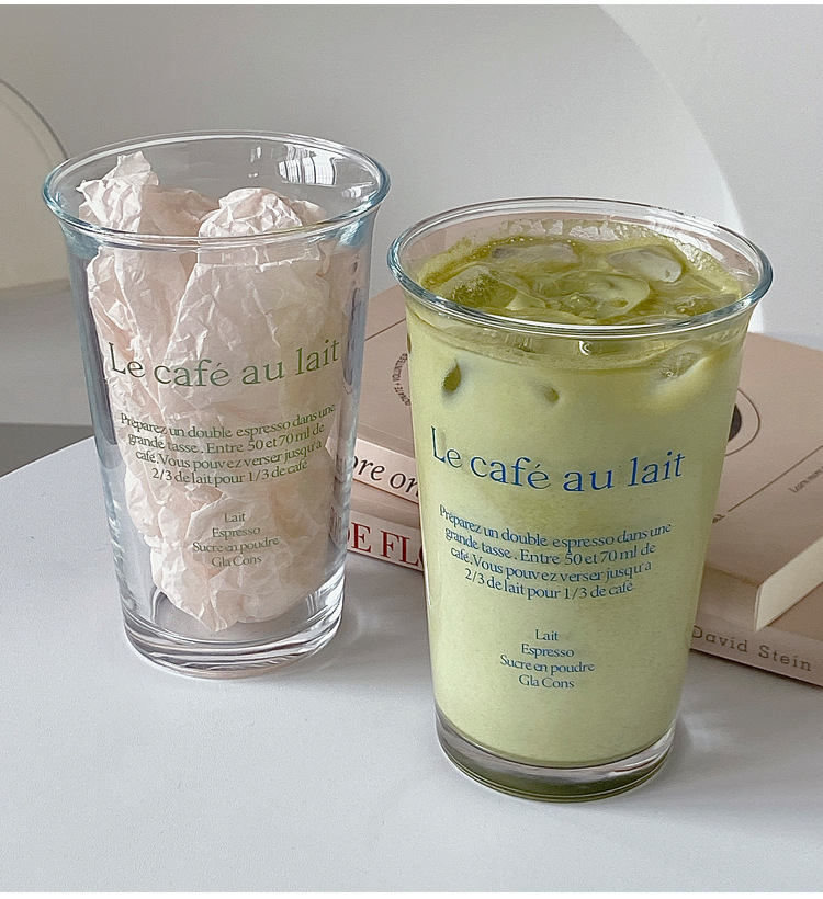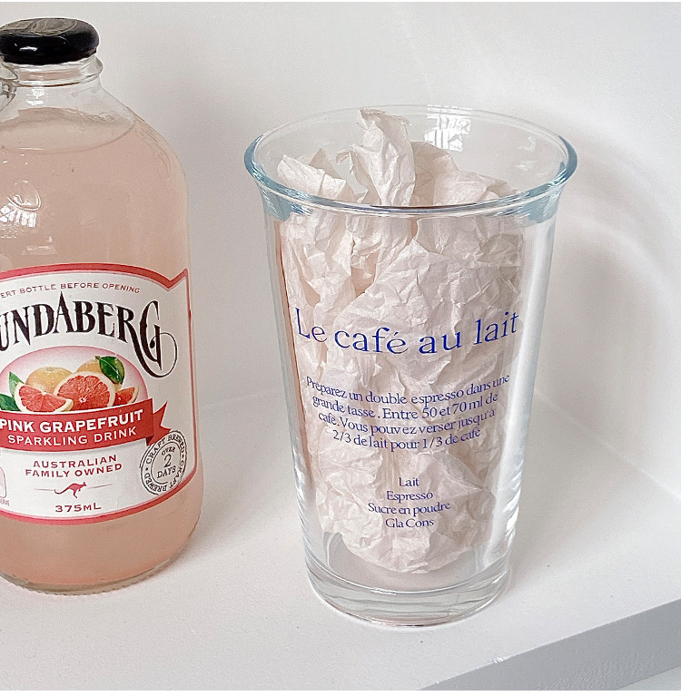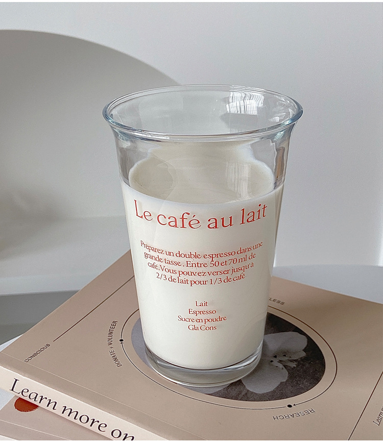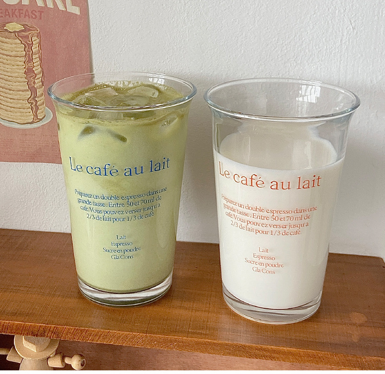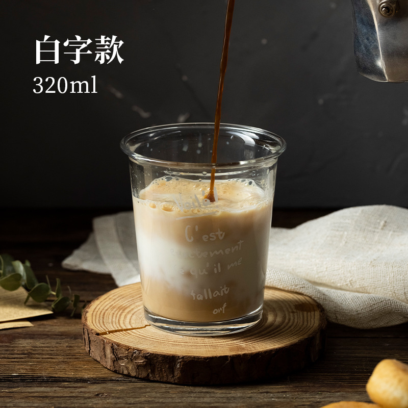 350ml 유리 우유 컵 스타일 투명 컵 사무실 가정용 물 컵 문자 컵 높은 색상 값