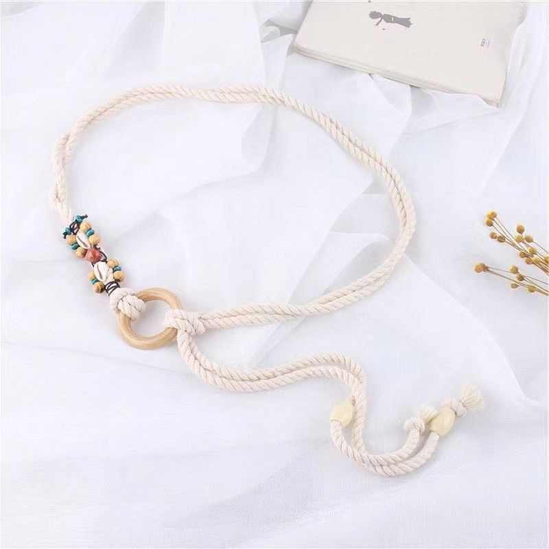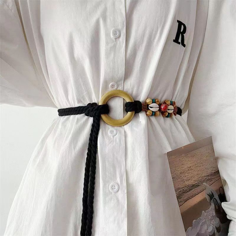 예술적 짠 벨트 모리 로프 라운드 버클 허리 로프 장식 쉘 허리 체인 벨트 여성의 모든 경기스토어 가기