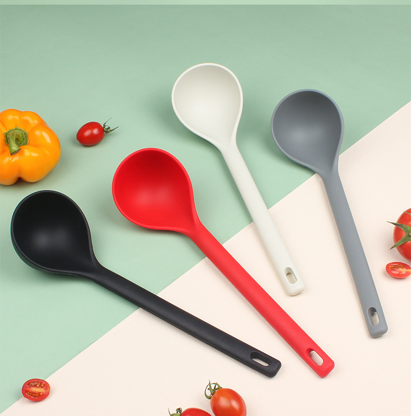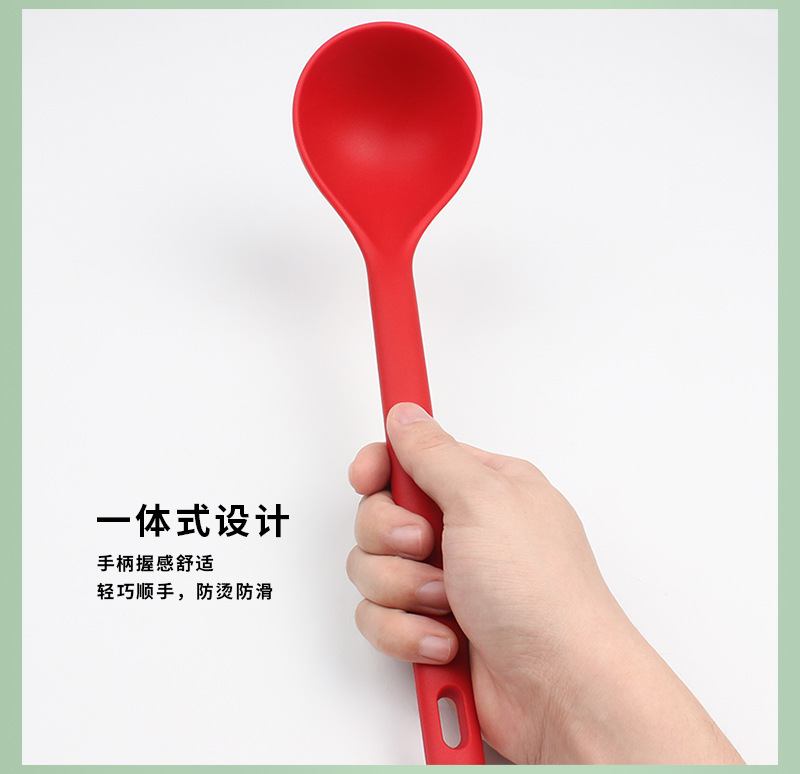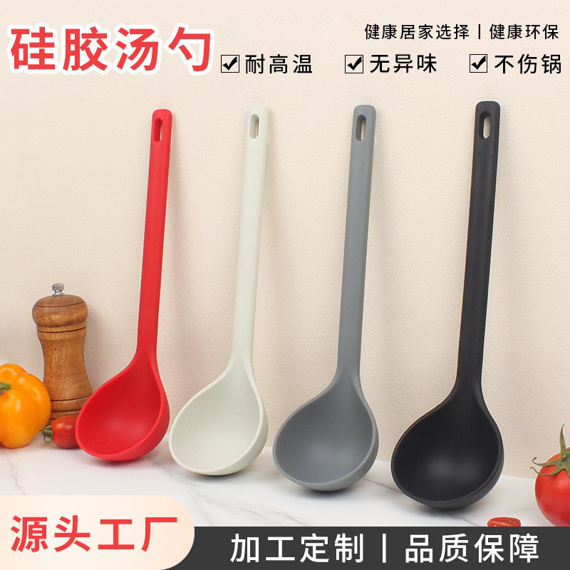 주방 실리콘 스푼, 고온 방지 요리 스트레이트 핸들 스푼, 가정용 대형 스푼, 화상 방지 및 미끄럼 방지 스푼 재고 있음