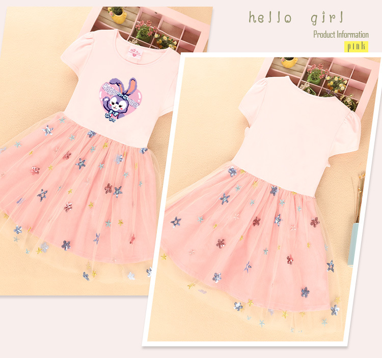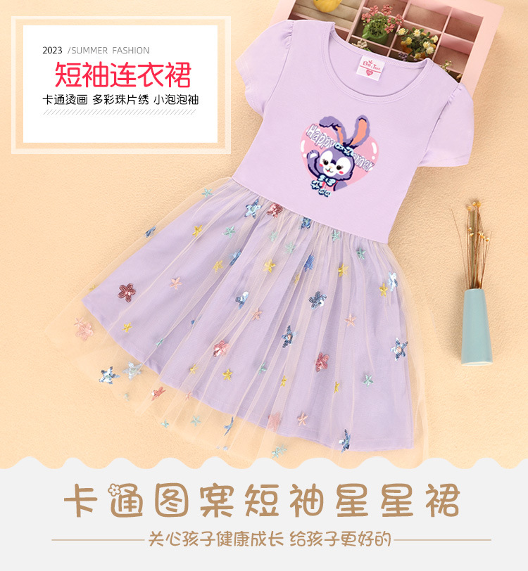 여자 원피스 여름 2023 새로운 반팔 원피스 스타 공주 원피스 어린이 만화 토끼 원피스스토어 가기