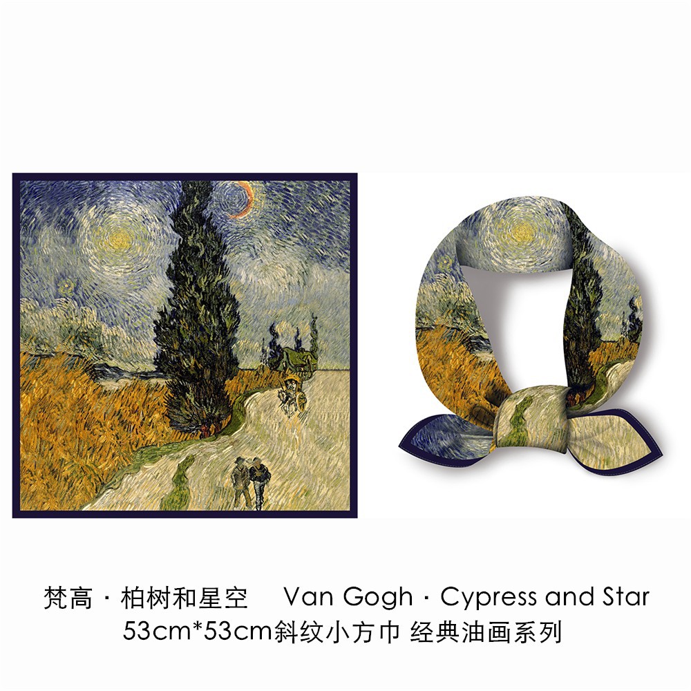 반 고흐. 사이프러스와 별이 빛나는 하늘 세계 유명한 그림 예술 전시회 장식 그림 인쇄 작은 사각형 스카프 여성 스카프 조수