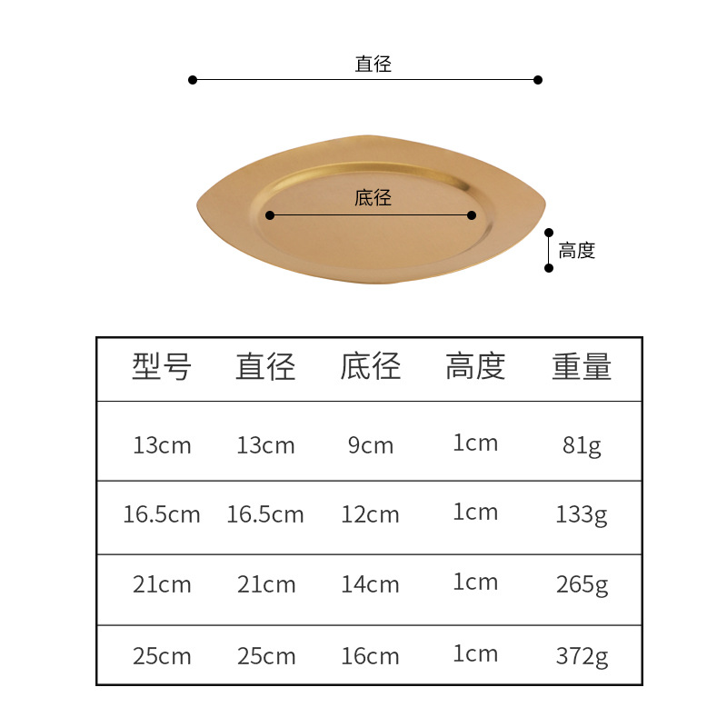 일본식 스테인레스 스틸 디스크 디저트 케이크 플레이트 카페 트레이 플랫 플레이트 황금 상업용 바베큐 플레이트 얕은 플레이트 뼈 플레이트