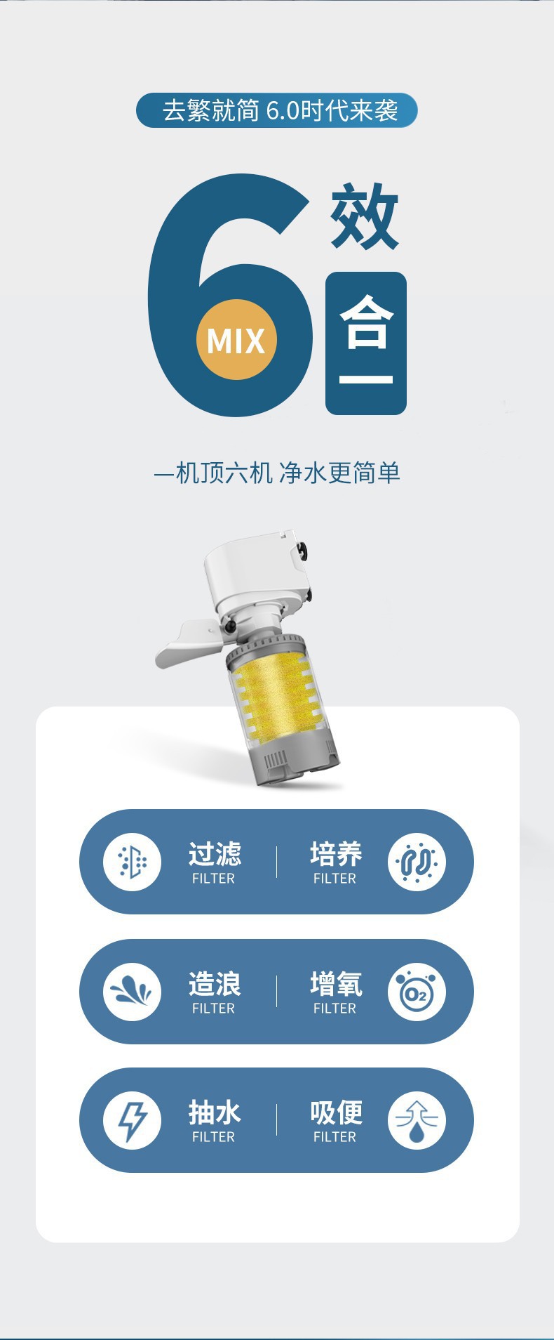 Yee 수조 필터 3-in-1 물고기 순환 시스템 내장 소형 정수기 산소 필터 펌프