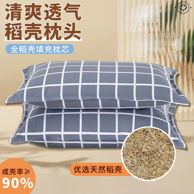 • 厂家批发全稻壳护颈枕助睡眠学生宿舍透气夏季枕套单人枕头家用新
