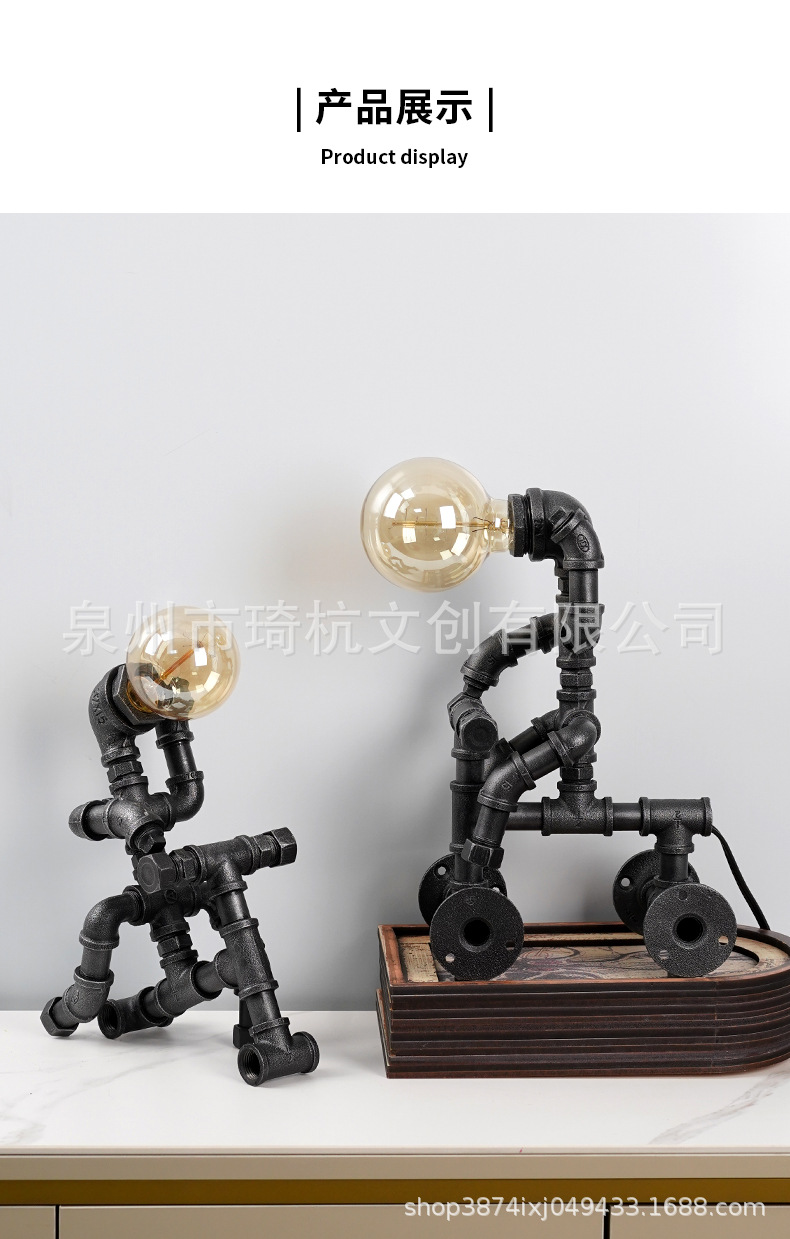 크로스 보더 핫 로봇 물 파이프 테이블 램프 장식 산업 스타일 바 가게 장식 연구 침실 침대 옆 조명스토어 가기