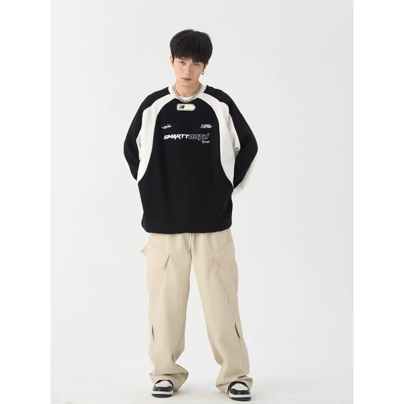 2023 봄과 가을 새로운 미국 레트로 Wei Yi Neutral 틈새 느슨한 긴 소매 바느질 (실제 사진 포함) 1스토어 가기