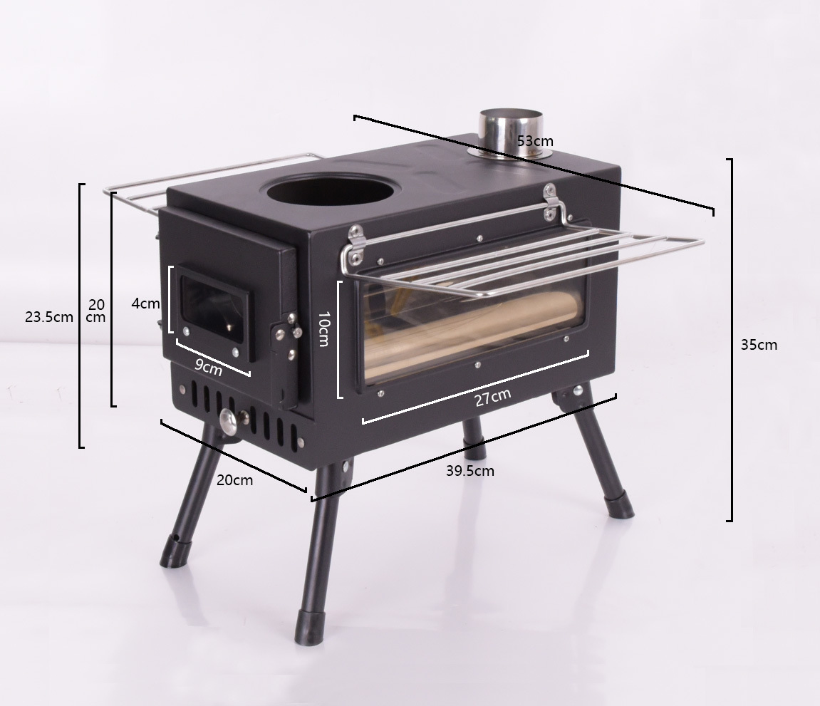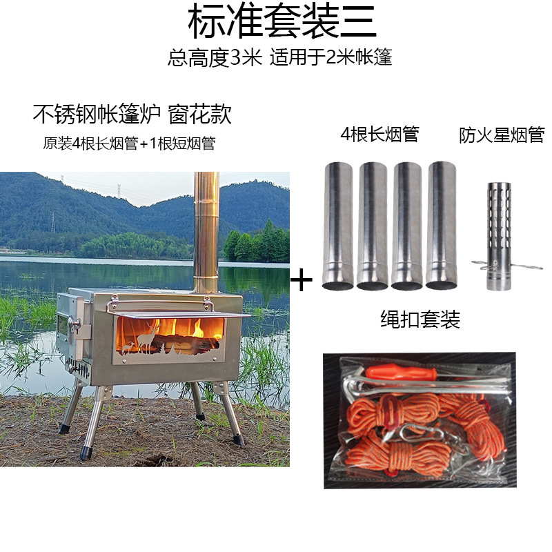 장작 스토브 야외 캠핑 난방 장작 스토브 피크닉 조명 텐트 화재 창 스테인레스 스틸 접이식 난방 스토브