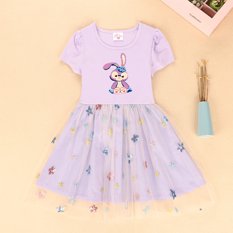 여자 원피스 여름 2023 새로운 아기 반팔 스타 스커트 어린이 만화 인쇄 거즈 스커트 머리카락의 세대