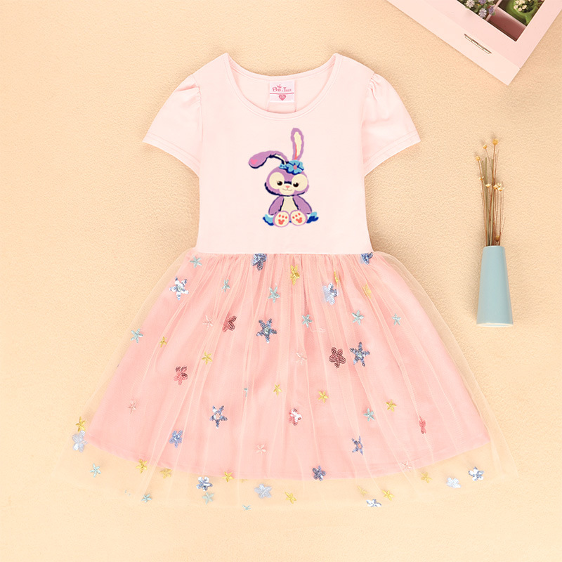 여자 원피스 여름 2023 새로운 아기 반팔 스타 스커트 어린이 만화 인쇄 거즈 스커트 머리카락의 세대스토어 가기