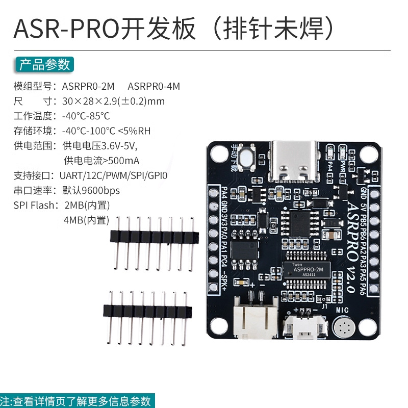 ASR PRO 음성 인식 모듈 직렬 포트 원 클릭 AI 오프라인 음성 개발 보드 Tianwen 학습 모듈 다운로드스토어 가기