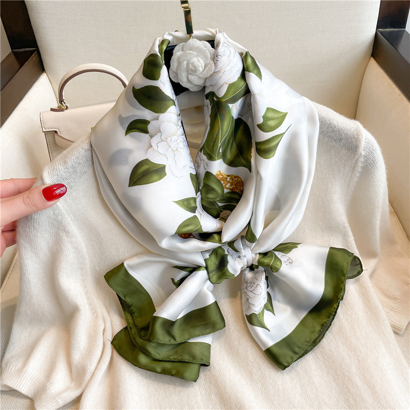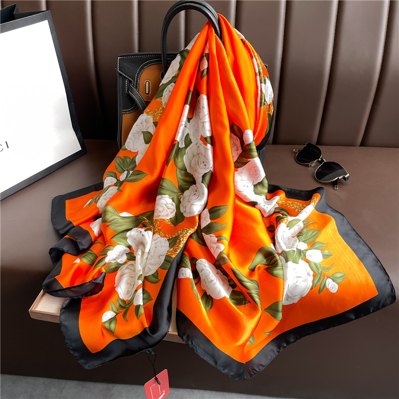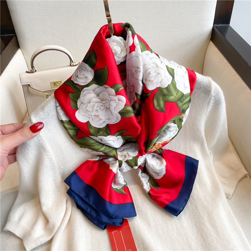 모란 플라워 럭셔리 우아한 스카프 온라인 유명 인사 생방송 새로운 실크 스카프 긴 대형 여행 목도리 태양 보호