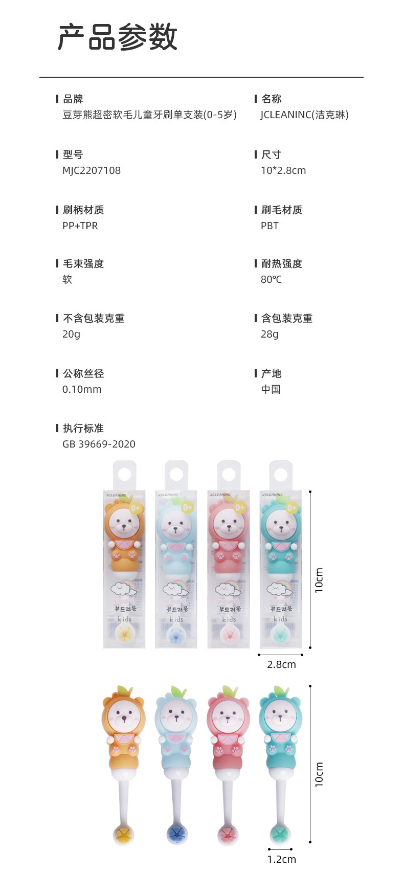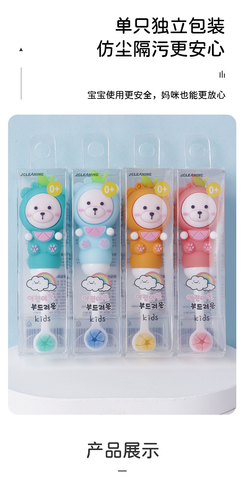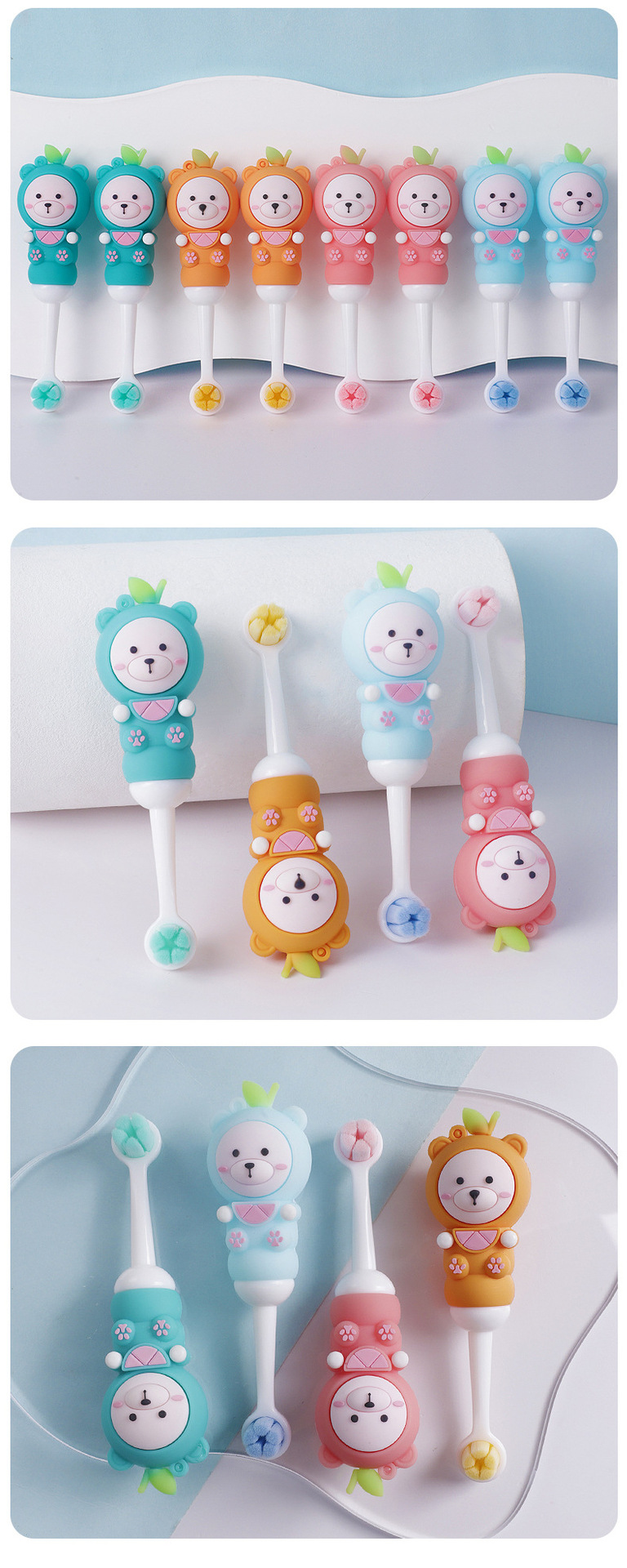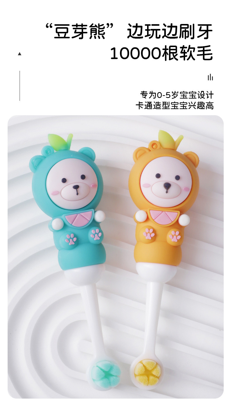 콩 새싹 곰 칫솔 어린이 만화 단일 독립 포장 0-5 세 실리콘 손잡이 부드러운 머리 고급 칫솔 도매