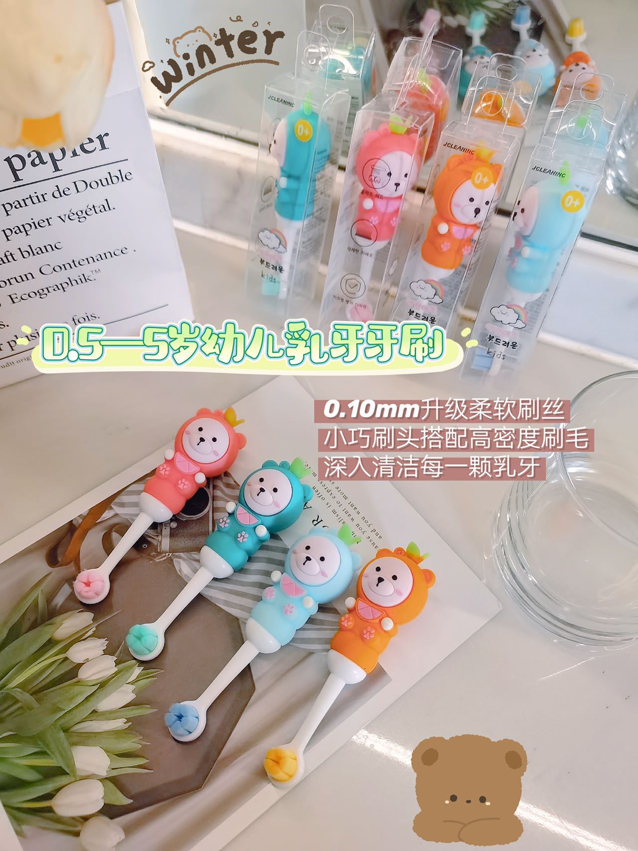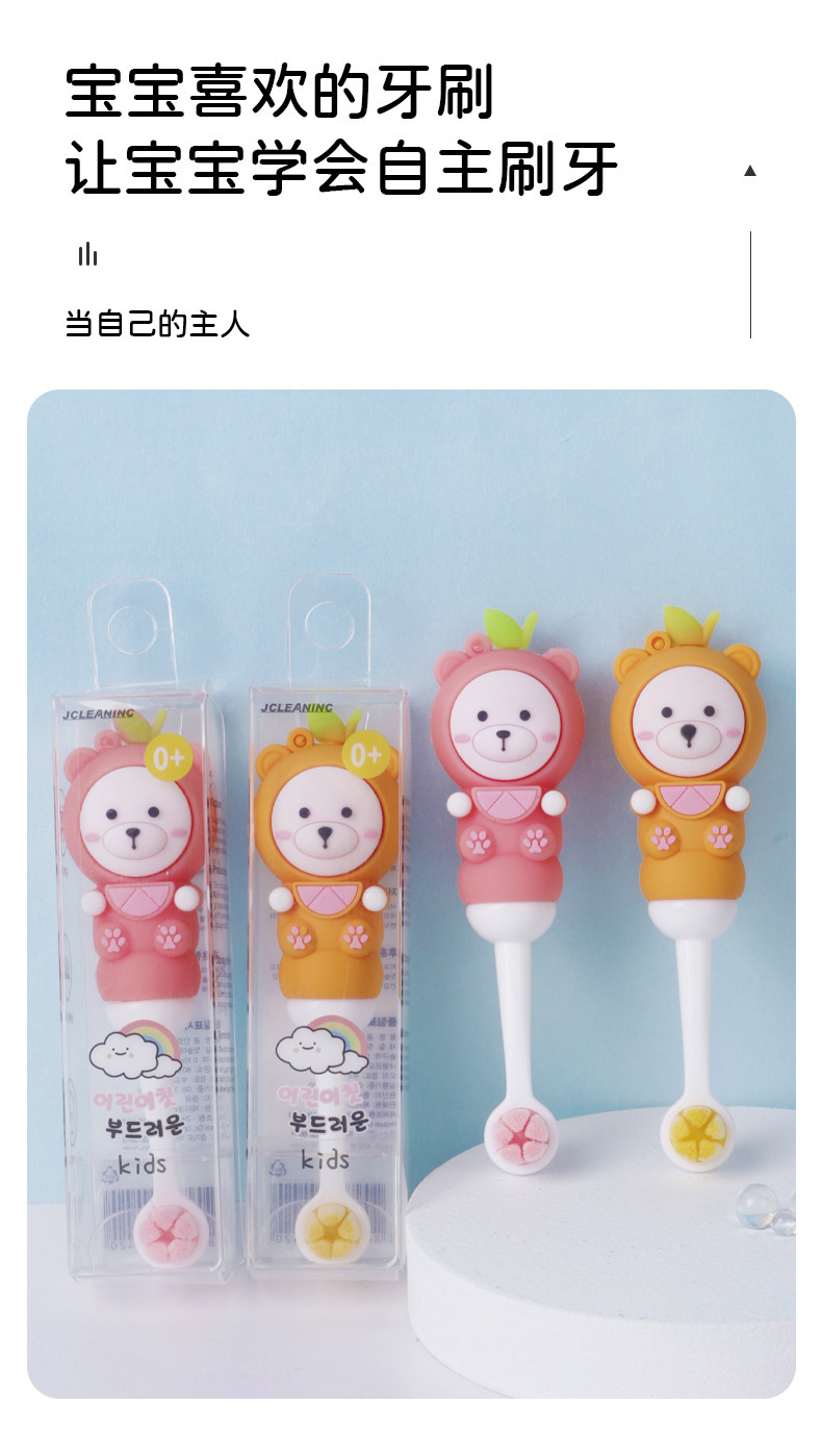 콩 새싹 곰 칫솔 어린이 만화 단일 독립 포장 0-5 세 실리콘 손잡이 부드러운 머리 고급 칫솔 도매스토어 가기
