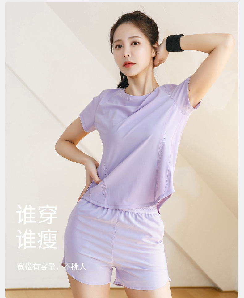 라운드 넥 얇은 요가 의류 여성용 스포츠 반팔 야외 달리기 속건 티셔츠 느슨한 통기성 피트니스 탑
