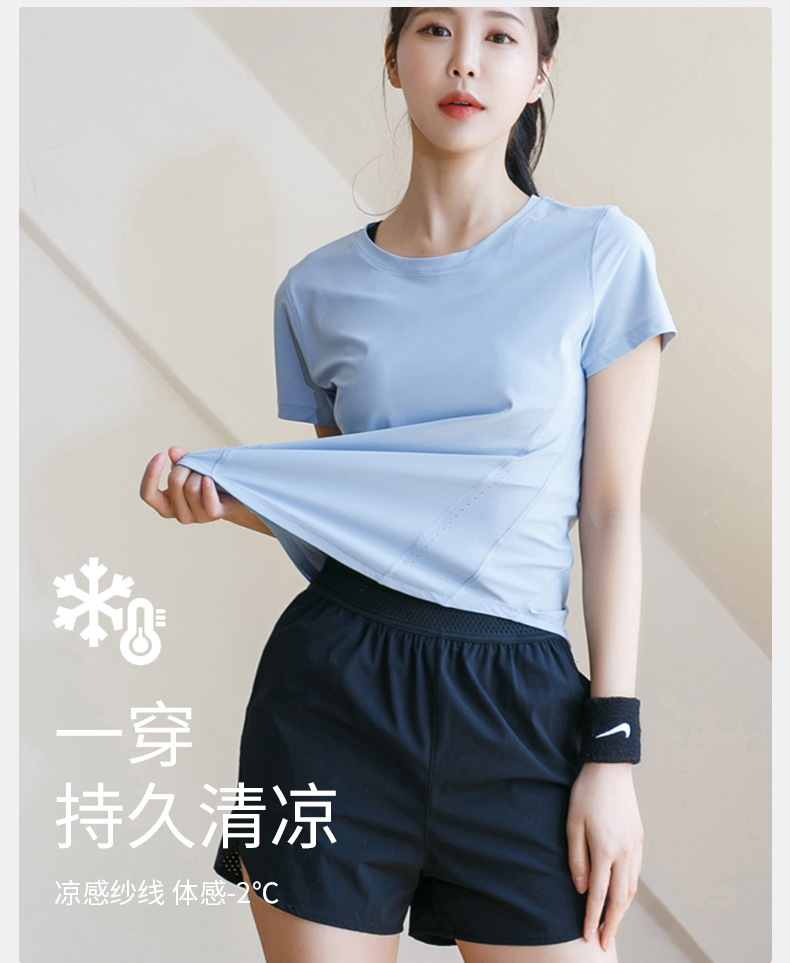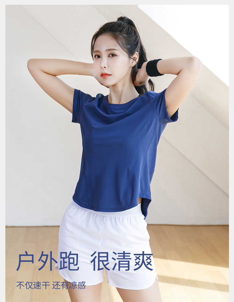 라운드 넥 얇은 요가 의류 여성용 스포츠 반팔 야외 달리기 속건 티셔츠 느슨한 통기성 피트니스 탑스토어 가기