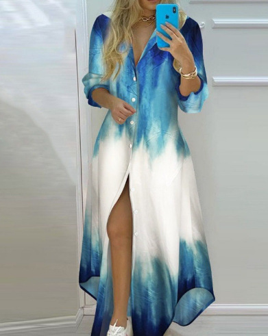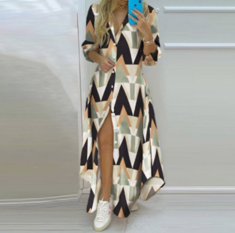 2023速卖通wish亚马逊爆款 欧美春夏时尚性感衬衫长裙连衣裙女