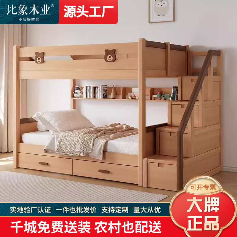 작은 아파트 높고 낮은 침대 어머니 침대를위한 작은 곰 스타일 이층 침대를위한 현대 간단한 어린이 단단한 나무 이층 침대스토어 가기