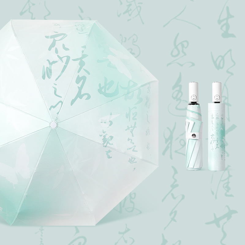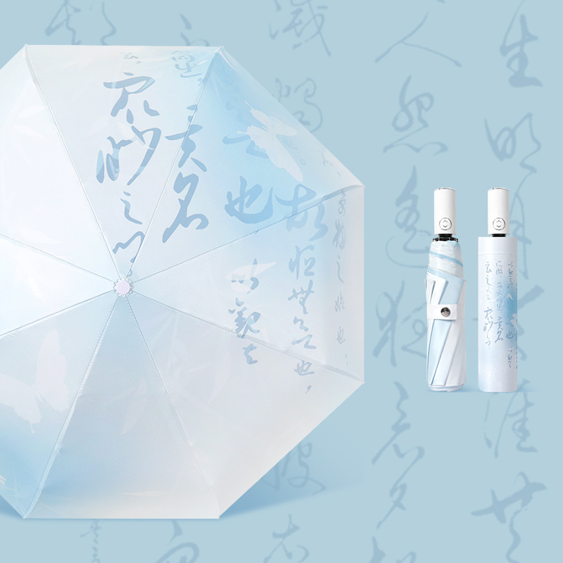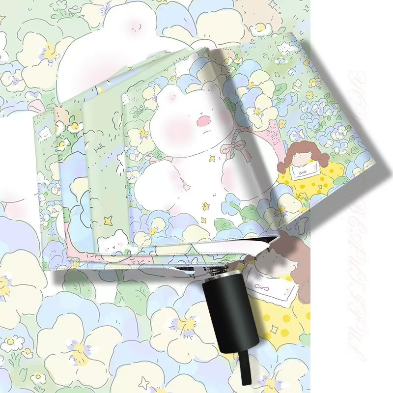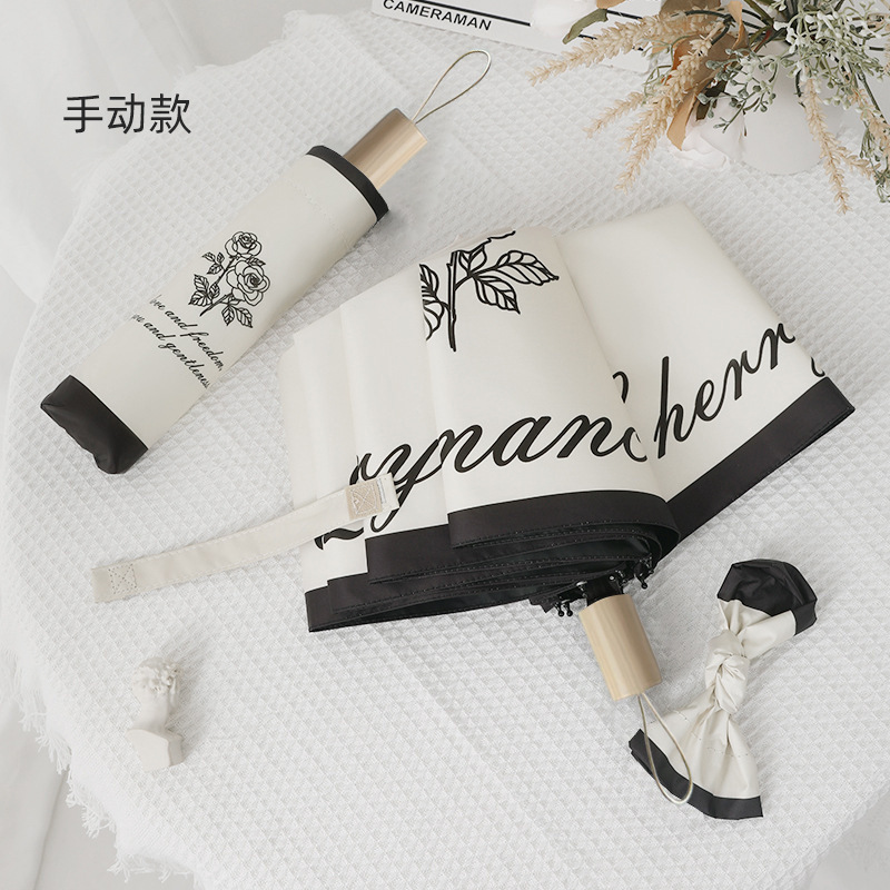 도매 자동 삼중 우산 만화 디지털 접이식 우산 검은 고무 자외선 차단 선 스크린 태양 우산