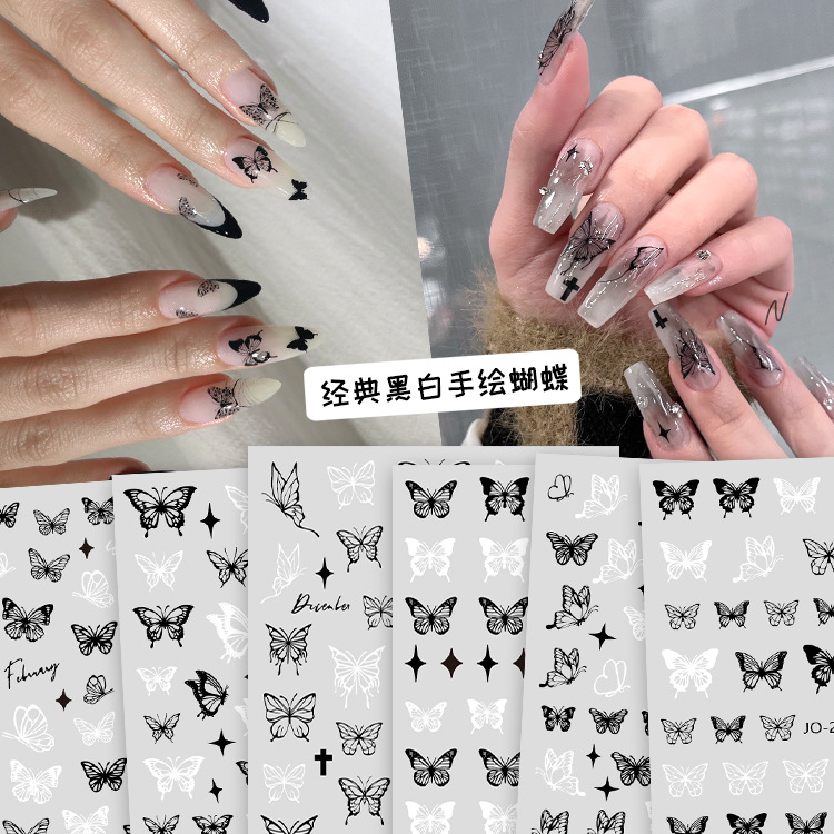 인터넷 연예인 다크 나비 네일 아트 스티커 혼합 배치 흑백 중공 나비 접착 네일 스티커 인스 타 그램 스타일 작은 패턴스토어 가기