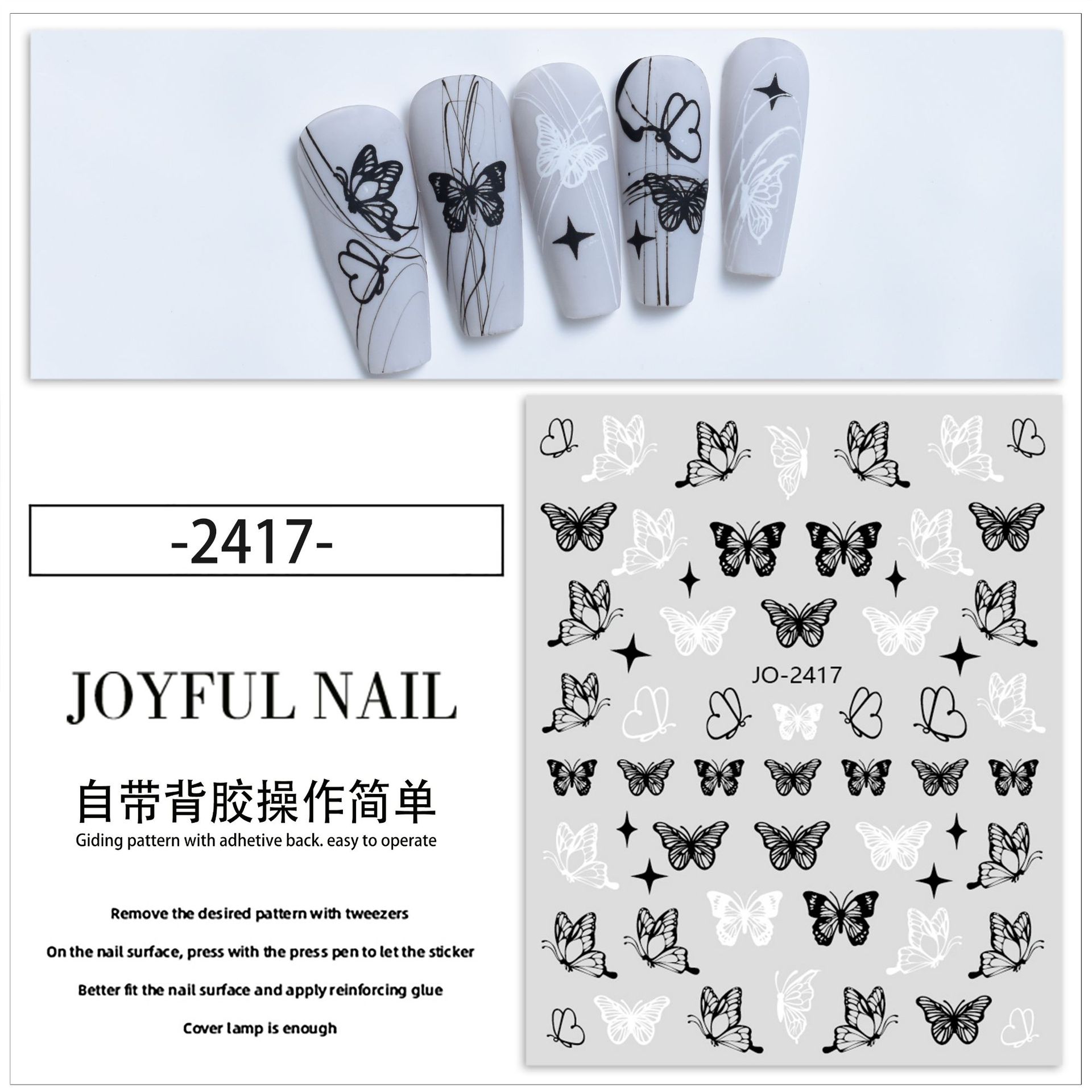인터넷 연예인 다크 나비 네일 아트 스티커 혼합 배치 흑백 중공 나비 접착 네일 스티커 인스 타 그램 스타일 작은 패턴