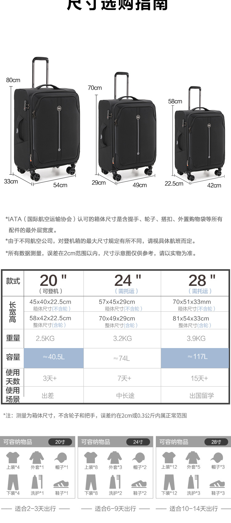 • 20inch (3일간의 단거리 확장 포함) 기내용 캐리어