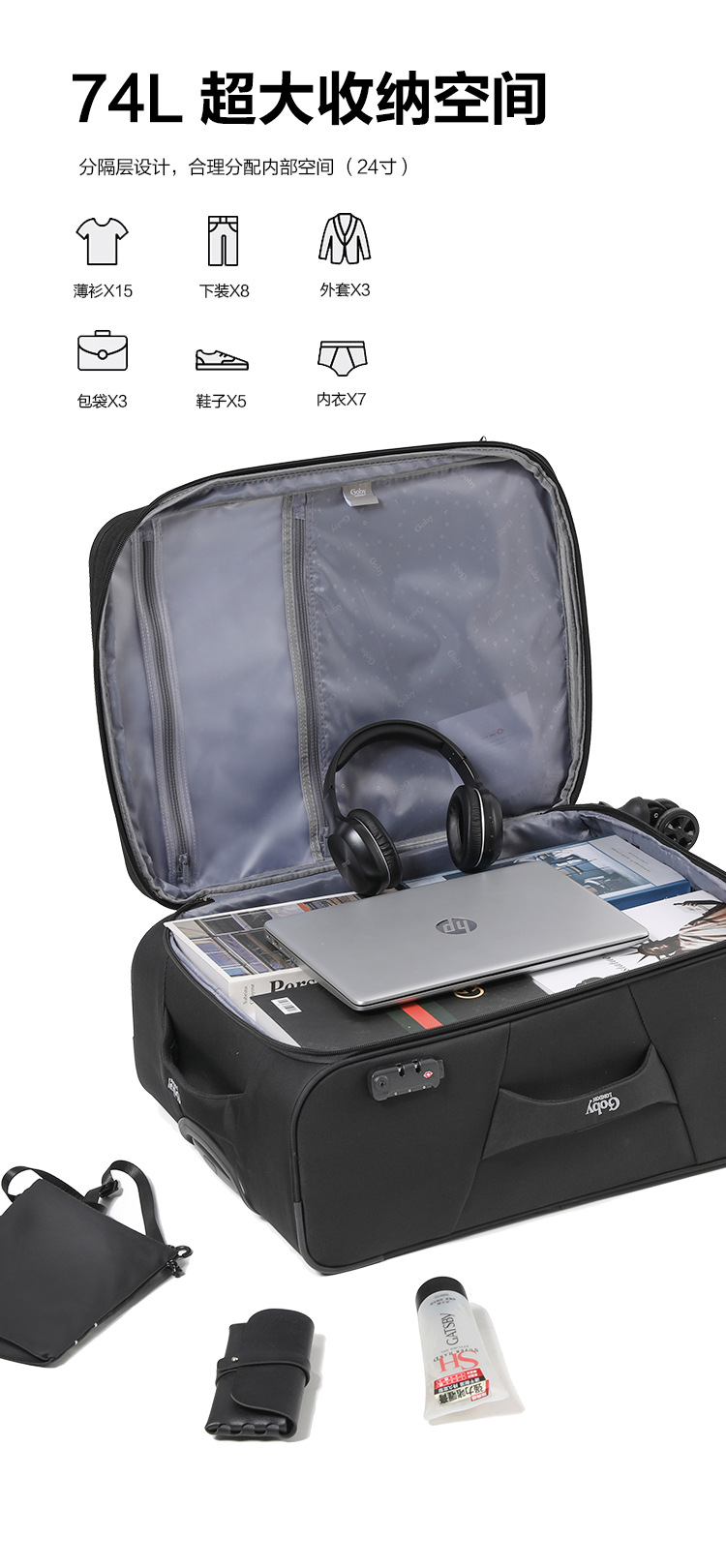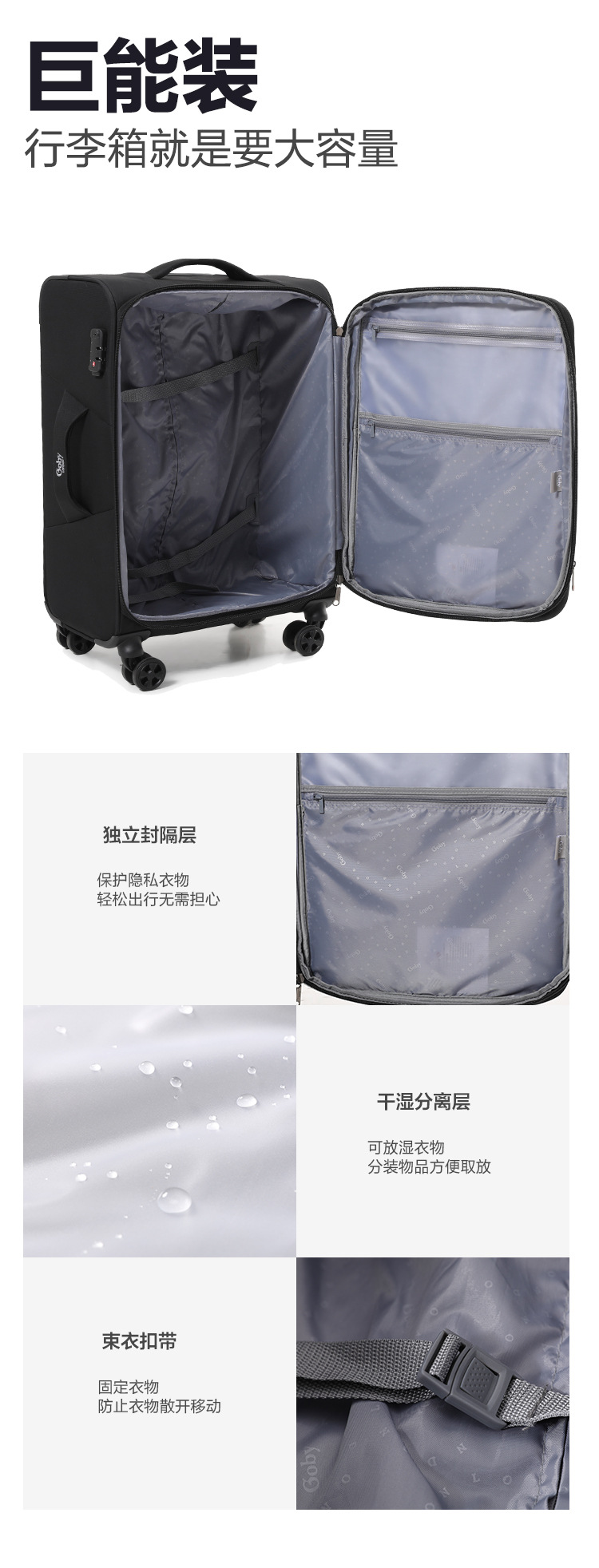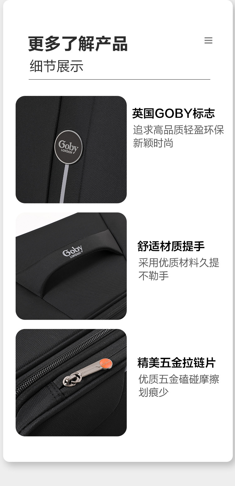 영국 goby 수하물 20inch 탑승 여성 방수 옥스포드 천 대용량 가방 소프트 트롤리 케이스스토어 가기