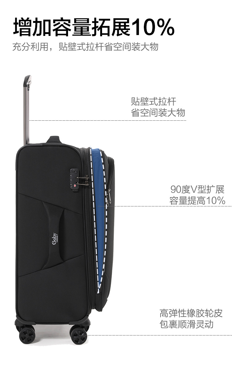 영국 goby 수하물 20inch 탑승 여성 방수 옥스포드 천 대용량 가방 소프트 트롤리 케이스