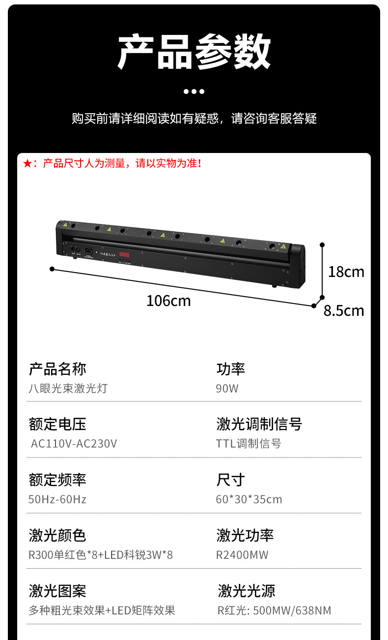 Paton Eight-Eye 레이저 빔 라이트 8+8LED 도트 매트릭스 레이저 라이트 바 디스코 풀 컬러 레이저 라이트 무대 레이저스토어 가기