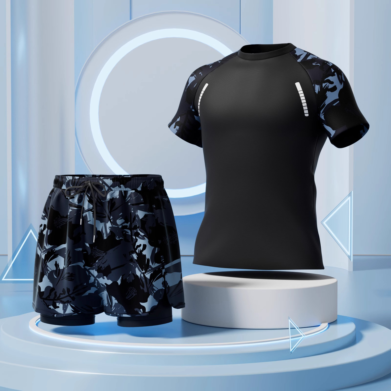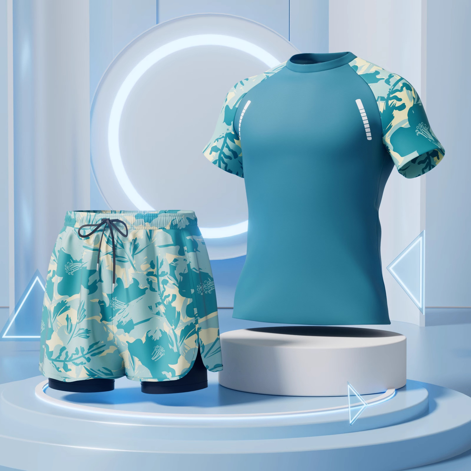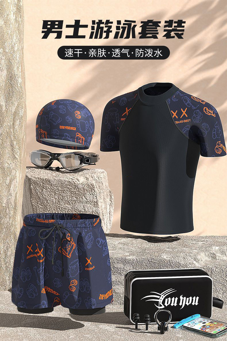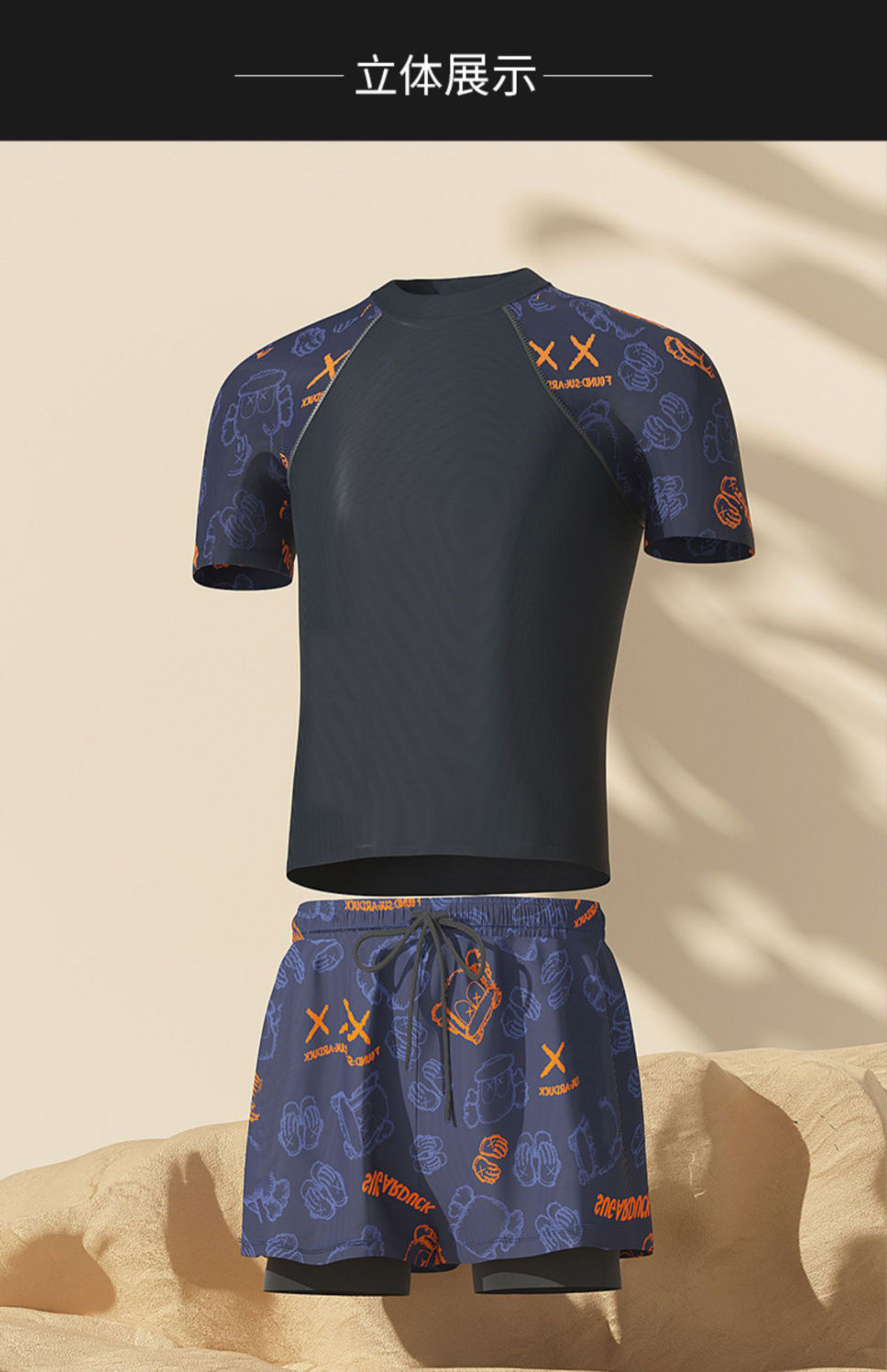 남자 수영복 세트 새로운 패션 대형 복서 가짜 투피스 안티 당혹감 인쇄 스포츠 수영 온천 반바지스토어 가기