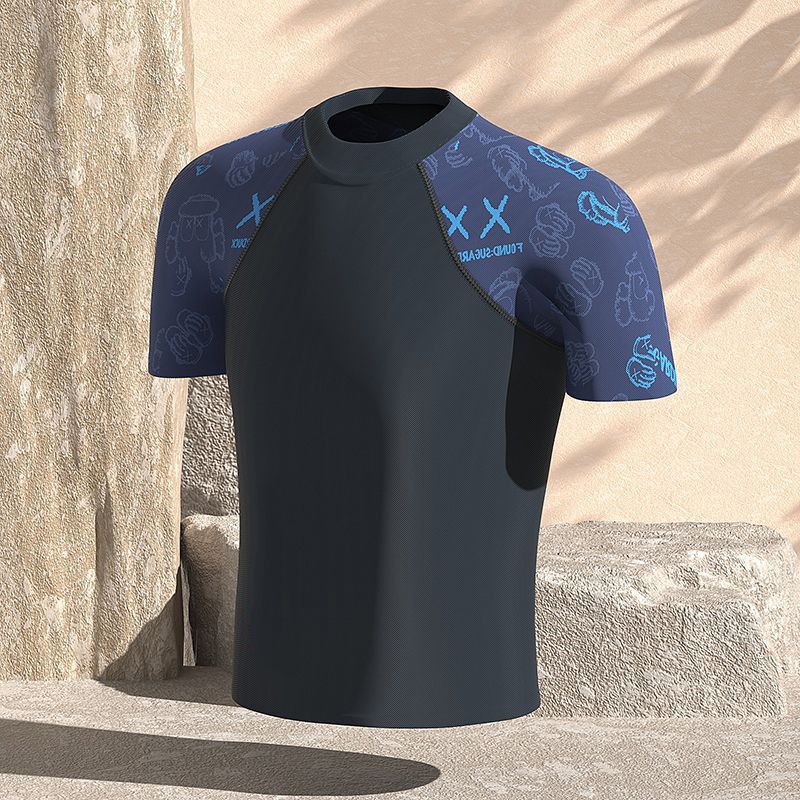 • 검은색 상의 + 흰색 줄무늬 수영 트렁크