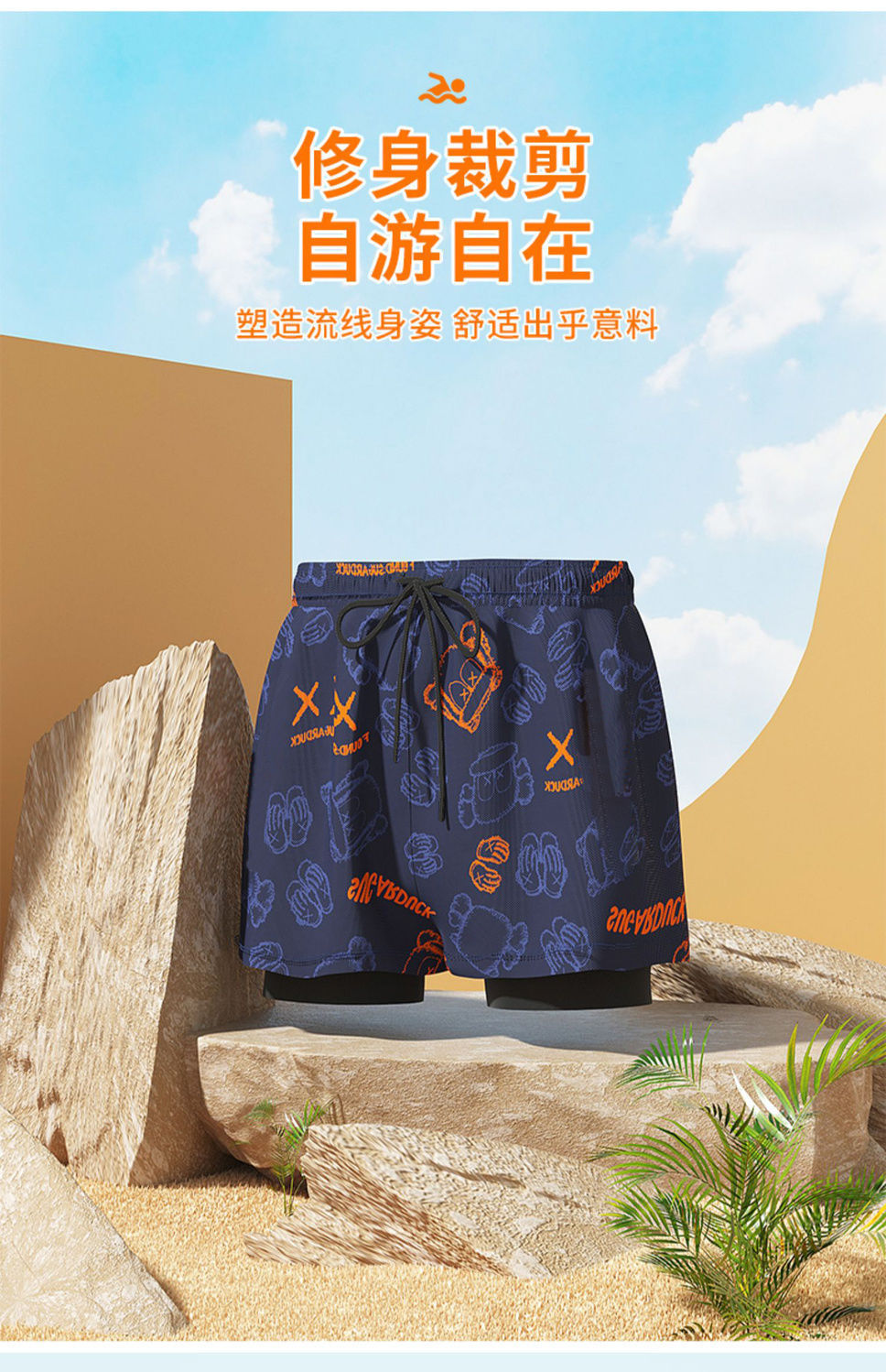 남자 수영복 세트 새로운 패션 대형 복서 가짜 투피스 안티 당혹감 인쇄 스포츠 수영 온천 반바지
