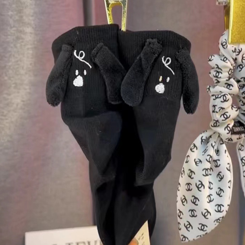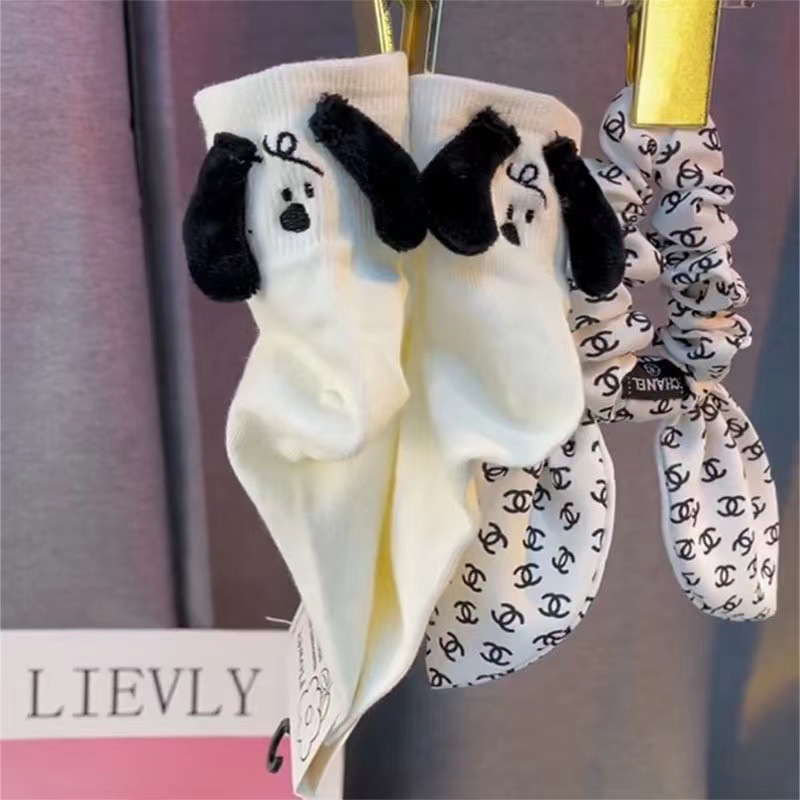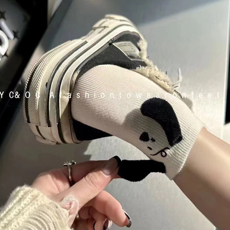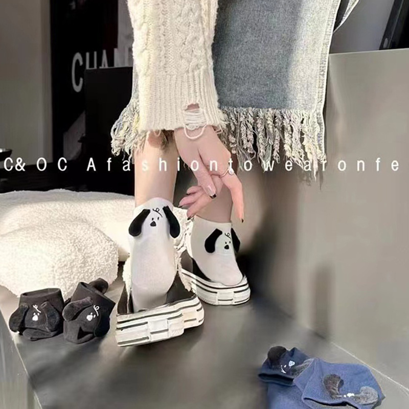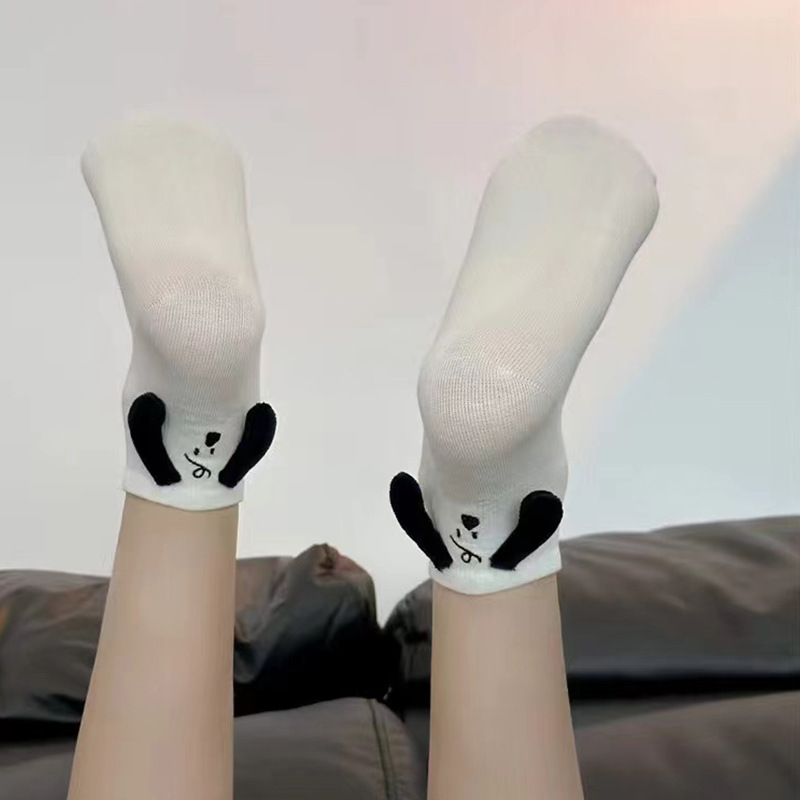 봄과 여름 양말 여성용 얇은 강아지 양말 귀여운 만화 입체 흑백 자수 짧은 튜브 여자 양말스토어 가기