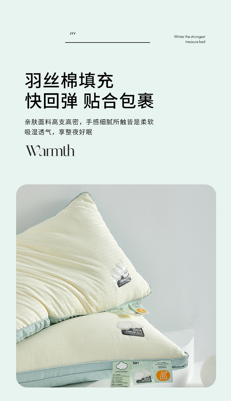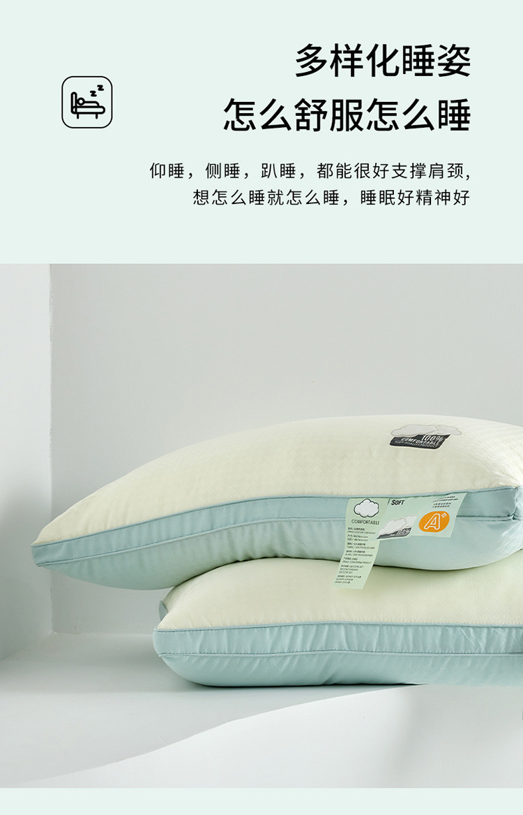A类羽丝绒枕头中枕高枕低枕单人成人枕芯护颈枕家用儿童枕一对装