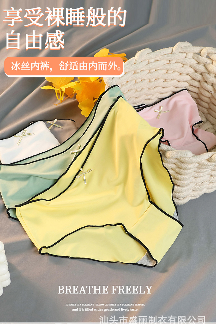 비 마킹 아이스 실크 속옷 여성용 순면 가랑이 항균 여름 얇은 팬티 여아 중간 허리 여아 플러스 사이즈 바지스토어 가기