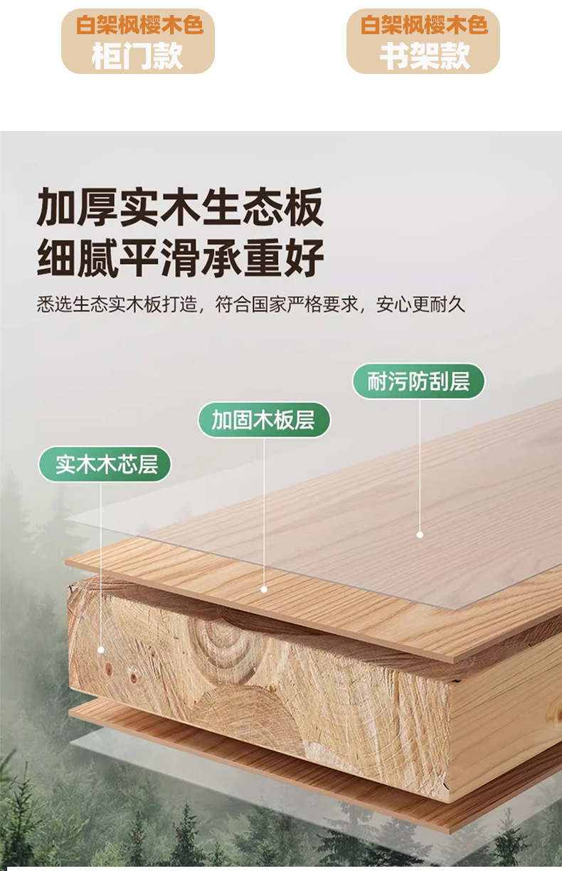 • [캐비닛 도어 원목 생태보드 모델] 화이트 프레임 + 메이플 체리우드 컬러