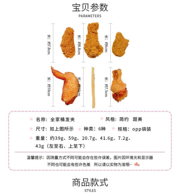 감자 튀김 머리핀 구운 닭 다리 닭 날개 머리핀 인터넷 사이드 클립 모조 음식 놀이 재미 있은 튀긴 닭 다리 헤어 액세서리 클립스토어 가기