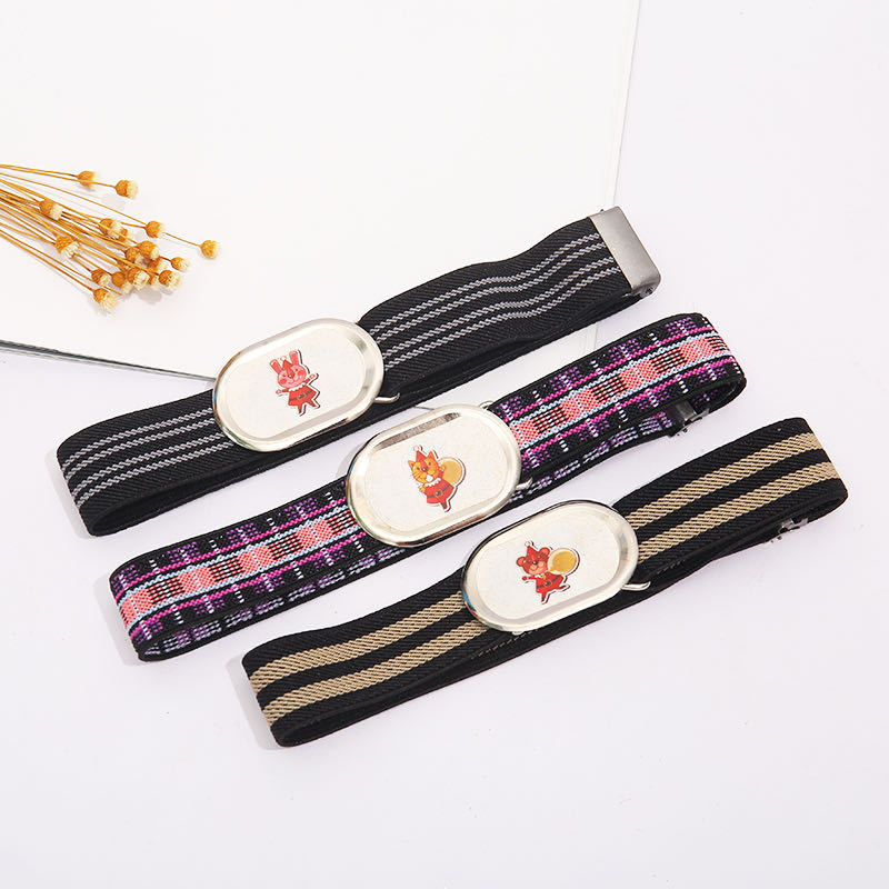 어린이 만화 버클 벨트 도매 멀티 컬러 단일 루프 금속 탄성 벨트 캐주얼 패션 탄성 벨트