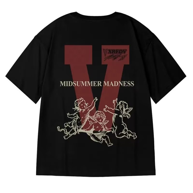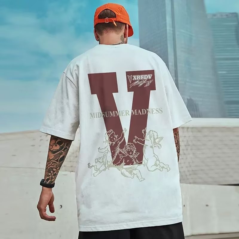 미국식 복고풍 중국 패션 플러스 뚱뚱한 플러스 사이즈 반팔 티셔츠 남자의 2023 여름 커플 특대 탑스토어 가기
